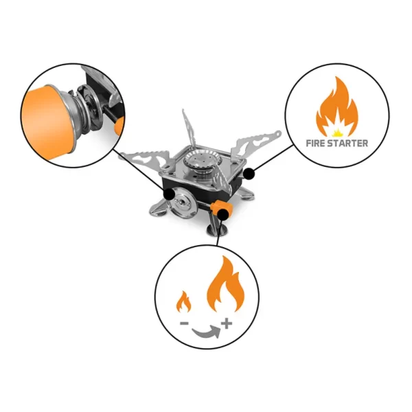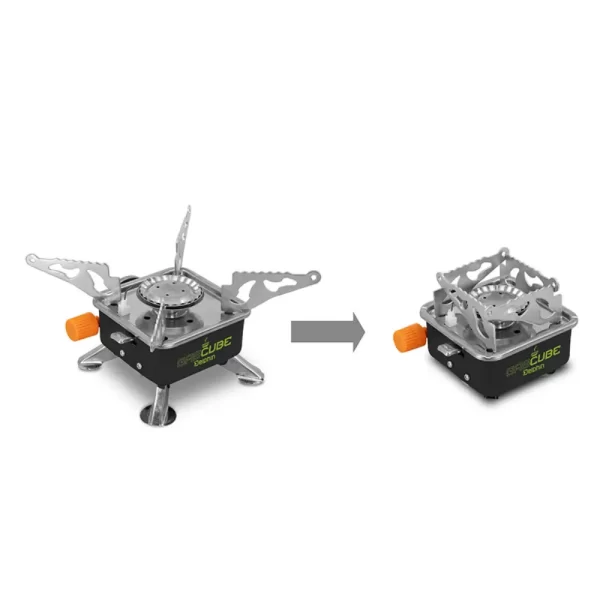 Aragazul este ușor de montat și utilizat, fiind pregătit pentru gătit în doar câteva minute. Echipat cu un buton de reglare a fluxului de gaz și aprindere piezoelectrică, elimină necesitatea chibriturilor sau brichetelor, oferind un control mai bun asupra flăcării.Picioarele rabatabile asigură o stabilitate excelentă pe orice suprafață, iar părțile metalice pliabile se ajustează în funcție de diametrul vaselor de gătit.Aspectul elegant, cu un finisaj negru și accente verzi, conferă un stil contemporan, potrivit pentru orice aventură în aer liber. Livrat cu o husă de protecție din material textil cu șnur, GASCUBE este ușor de transportat și depozitat, protejându-l de eventualele zgârieturi sau deteriorări.