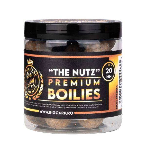 Boilies De Carlig Big Carp The Nutz este probabil cel mai bun si calitativ boilies de tip birdfood de pe piata, stabilind criteriul de referinta pentru boiliesurile pe baza de alune tigrate, pulberi de proteine de lapte, arahide, alune braziliene zdrobite, extract de nuca de cocos, extract de alune tigrate, praf de caramel extra cremos si alte cateva ingrediente cheie pe care nu le putem dezvalui.