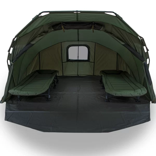 Cortul NGT Hooded XL Fortress vine cu toate caracteristicile modelului clasic pentru 2 persoane, dar cu un acoperiș extins ce oferă protecție suplimentară în condiții dificile. Streașina servește ca o verandă, oferind umbră în zilele însorite și protecție împotriva ploii. Acoperișul are un design special pentru drenaj, permițând păstrarea ușilor și ferestrelor deschise pentru ventilație optimă.