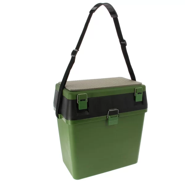 Această cutie/scaun este soluția perfectă pentru sesiunile scurte de pescuit, oferind atât un loc comod pentru a sta, cât și spații ample de depozitare. Este practică și ușor de transportat datorită curelei de umăr.