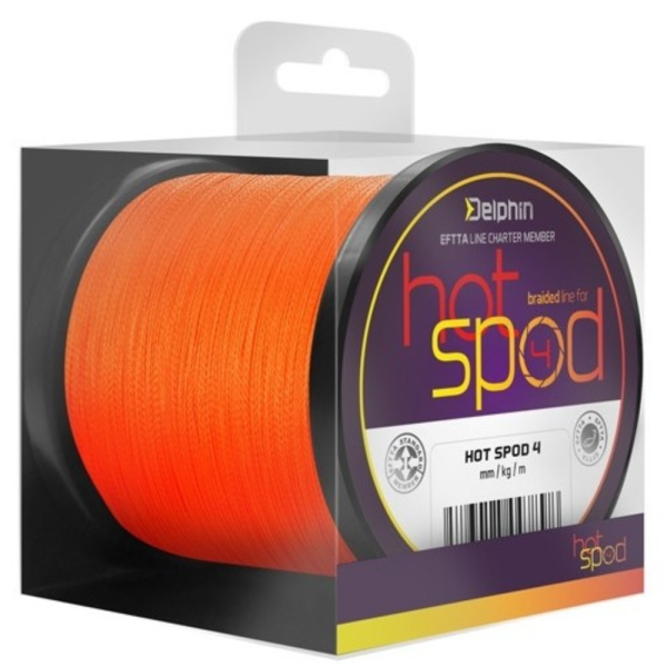 Fir Textil Delphin Hot Spod 4, Culoare Portocaliu, 0.14mm, 9.10kg, 300m cu acestet produs, Hot Spod defineste seria firelor destinate in special pentru spod, datorita carora veti fi capabil sa transportati hrana in locul dorit. Portanta si rezistenta la frecare exceptionala o asigura impletitura din cele 4 fibre PE. Avand diametrul redus, de doar 0,14mm si fiind uniform pe toata lungimea sa, ajuta in obtinerea distantelor mari in lansare (cu cat firul este mai subtire, creste distanta lansarii).