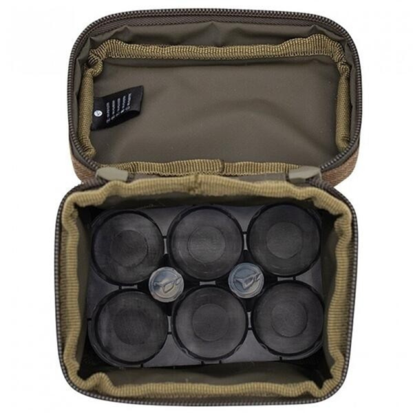 Geanta Korda Compac Goo S este o geanta dedicată pentru transportul și depozitarea aditivilor de momeală Goo de la Korda.. Cusaturile duble prezente in toate zonele de torsiune sporesc rezistenta si durabilitatea gentii. Inchiderea capacului se face cu ajutorul unui fermoar dublu Heavy Duty de 10mm rezistent la manipulari repetate.Are o căptușeală interioară cu o inserție detașabilă, așa că dacă există o scurgere, este simplu și ușor de curățat. Baza gentii este acoperita cu un strat cauciucat impermeabil, ce impiedica patrunderea apei sau a murdariei la interior. Manerele de transport finisate cu material cauciucat aderent nu ranesc pielea palmei in timpul utilizarii. Geanta dispune de un compartiment central ce are peretii izolati cu o captuseala termica si poate transporta pana la 6 sticlute cu aditiv.