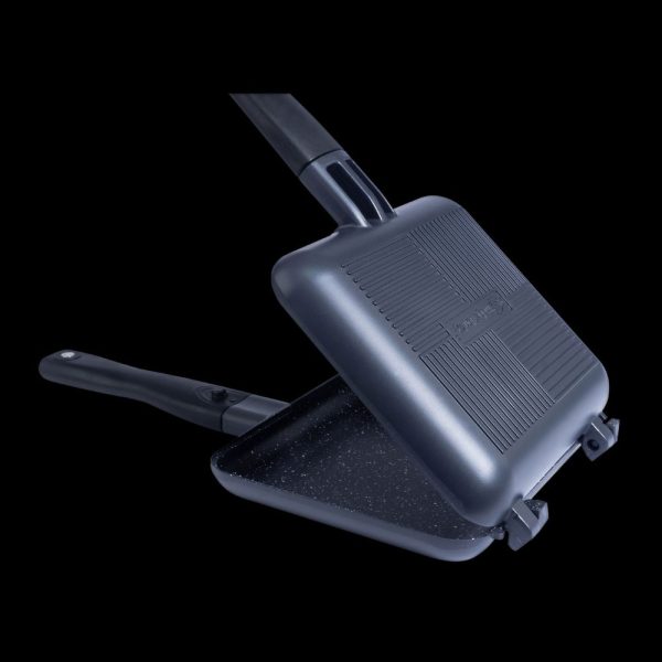 Prăjitorul de sandvișuri RidgeMonkey Connect Sandwich Toaster Granite Edition dispune de mânere detașabile cool-touch, un sistem de balamale detașabile care transformă o tigaie în două și un set complet de ustensile care intră în interiorul prăjitorului de pâine, împreună cu mânerele, pentru o depozitare ușoară. Forma pătrată înseamnă, de asemenea, că este mai puțin spațiu de depozitare irosit decât în cazul vaselor de gătit tradiționale în formă de cerc.
