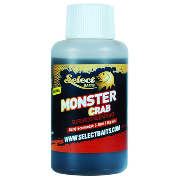 Select Baits Aroma Monster Crab este un atractant pentru pești, cu un miros puternic și gust delicios, conceput pentru a atrage peștii în jurul plasei de pescuit sau a monturii tale.Este o aroma ideala pentru mixurile pe baza de fainuri de carne, peste si extracte marine. Alte ingrediente recomandate sunt extractele naturale lichide, cum ar fi L030, Liquid Liver, Shellfish Protein, Mussel Protein sau Belachan. Se potriveste foarte bine si cu uleiurile de peste, de exemplu cu cel de somon, Salmon Oil.