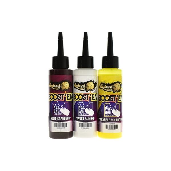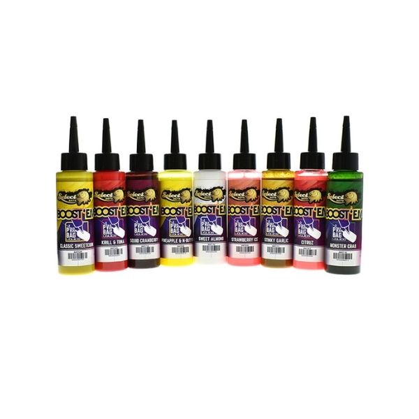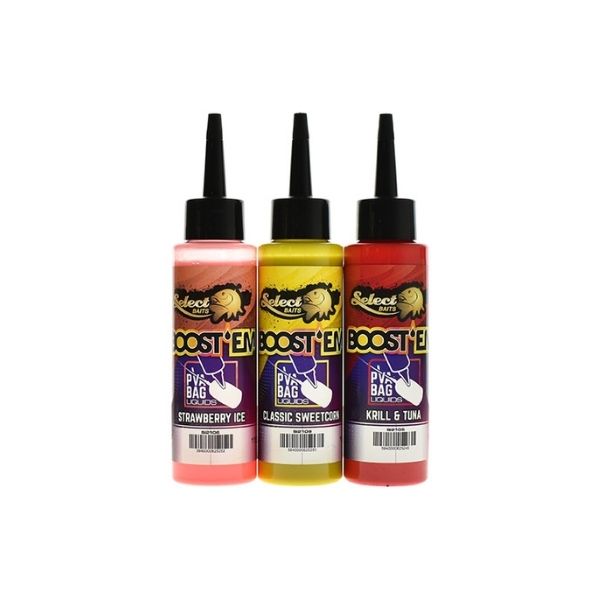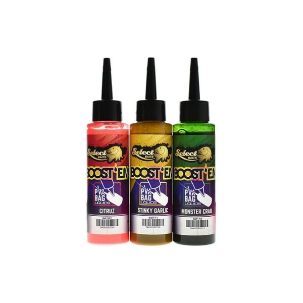Gama de aditivi Boost’em este construita in jurul ideii de atractie maxima a momelii. Acest lichid poate fi folosit pentru potentarea atractiei nadei din punga PVA, de pe momitor sau ca lichid pentru hidratarea si dip-uirea pop-up-urilor sau a boiliesurilor de carlig.