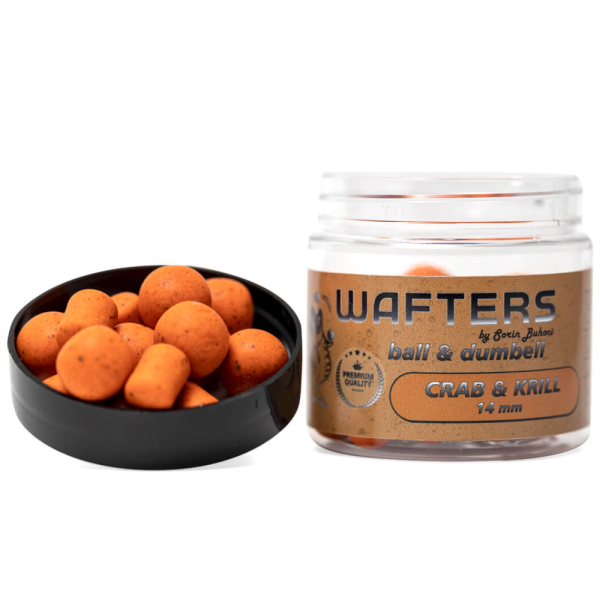 Wafters Ball & Dumbell Crab & Krill – 14 mm sunt momeli de carlig ce se vor preta perfect in pescuitul la crap.Am obtinut astfel momeli de carlig usoare, ce vor compensa perfect greutatea carligului, oferind o prezentare de tip “critic echilibrat” (wafter). Aceste momeli critic echilibrate au fost folosite de-a lungul timpului, de pescari experimentati oferind rezultate rezonabile . Datorita greutatii scazute, momeala de carlig se va comporta mai ‘natural’ pe substrat, Wafters Ball & Dumbell Ananas reprezinta o optiune calitativa, in culori variate, pe care pescarii de crap o vor considera cu siguranta pentru urmatoarea sesiune pe malul apei.